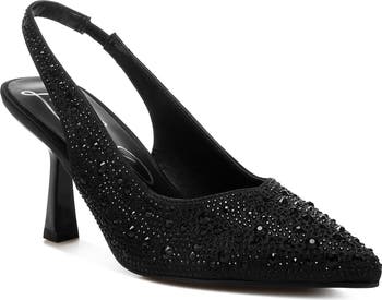 Tonal crystals bring evening shimmer and glamour to this svelte slingback pump styled with a pointed toe.