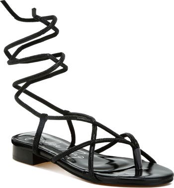 - Wraparound ankle strap with tie closure