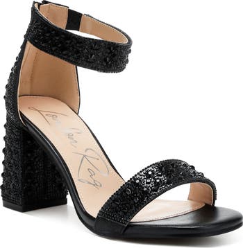 Tonal embellishments lend subtle shimmer and shine to your every movement in a party-ready sandal lofted by a towering heel.