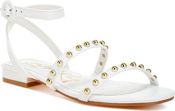 Gleaming studs highlight this airy ankle-strap sandal grounded by a lightly cushioned footbed and flat, walkable sole.