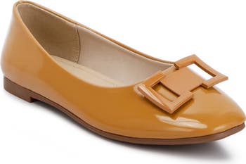 A classic ballet flat is shaped by a squared-off toe for a versatile look of contemporary elegance.