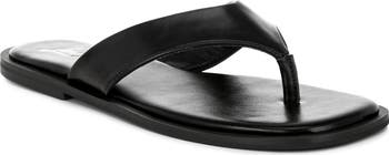 Stroll through sunny days in this soft faux-leather flip-flop featuring a lightly cushioned footbed and flat rubber sole.