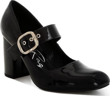 Polished buckle hardware defines the mary-jane strap that secures your foot in this classic pump lofted by a towering heel.