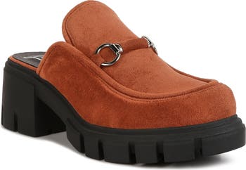 A soft velvet upper defines this stylish mule lofted by a chunky platform and blocky heel.