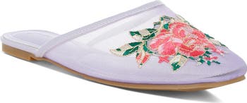 Stunning floral embroidery adds a touch of sweetness to the airy mesh upper of this elegant mule built with plush cushioning for day-to-night comfort.
