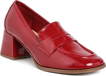 This leather penny pump has a smart look and an even smarter feel with a flared block heel.