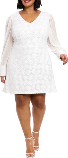 Turn heads in this A-line dress adorned with shimmering sequin daisies and framed by ethereal chiffon long sleeves.