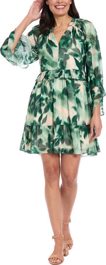 Ideal for coffee or brunch dates, this A-line minidress is covered with burnout flowers and detailed with fanciful frills.