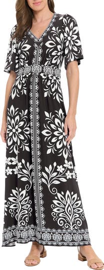 A mix of prints brings an eclectic look and feel to a short-sleeve dress that has you looking posh from garden parties to cocktail hours and anything in between.