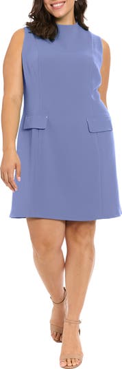 Glossy grommets add a hint of sparkle to the faux flap pockets of this sophisticated sheath dress finished with a sleek mock neck for an elegant touch.