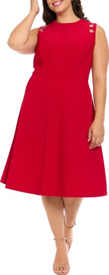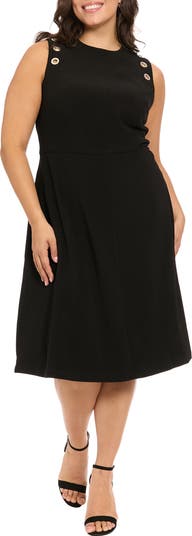A quartet of grommets detail each shoulder of this ribbed midi cut in a fit-and-flare silhouette.