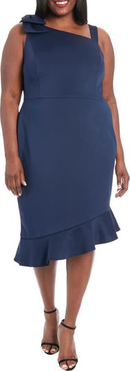 Turn heads in this party-perfect dress adorned with an asymmetric neckline, oversize bow and framed by a flouncy ruffle hem.