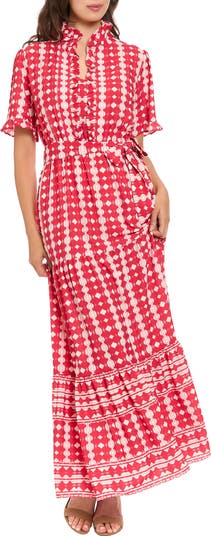 Perfect for coffee catch ups or weekend brunch dates, this maxi dress is designed in a tiered silhouette and cinched with a tie belt.
