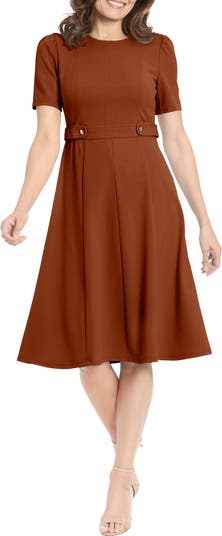 Easily transition from your desk to happy hour cocktails in this fit-and-flare dress framed by a jewel neckline and elongated short sleeves.