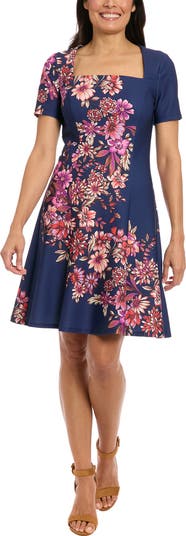 A charming fit-and-flare silhouette defines this leggy dress fashioned from soft, stretchy scuba that promises work-to-weekend comfort.