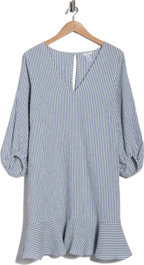 • Cloth & Stone Long Sleeve Denim Belted Midi Shirtdress