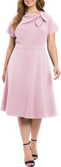 Effortlessly transition from desk to dinner in this fit-and-flare dress cut to a midi length and fashioned with a tie neckline.