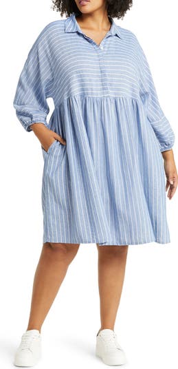 Allover stripes enliven this polished shirtdress crafted from a lightweight linen blend.