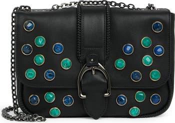Colorful jewels add vibrancy to a leather crossbody bag with a sized-down interior for your must-have essentials.