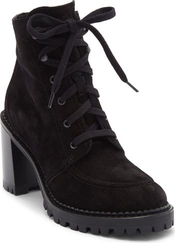 These ankle-high booties feature a lace-up vamp for a secure, custom fit, set on a sturdy block heel and finished with a lug sole for dependable traction.