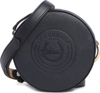 This circular belt bag made from leather with signature brand embossing keeps your essentials secure and your hands free.
