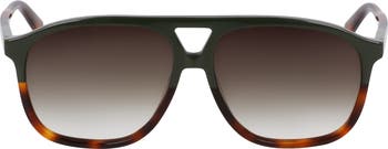 An aviator silhouette brings refined style to scene-stealing sunglasses agleam with logo-etched accents at the temples.