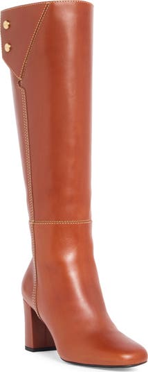 A croc-embossed finish enhances the chic style of this knee-high leather boot that's lifted by a wrapped block heel.