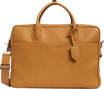 Keep your work essentials organized and secure in this double-compartment briefcase expertly crafted from pebbled leather and fitted with multiple pockets.
