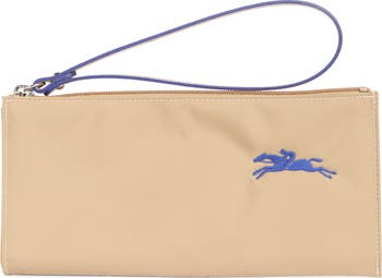 A wristlet pouch made from durable nylon features a timeless logo graphic to offer a signature appeal for quick outings.