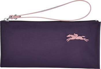 - - Wristlet strap - Zip closure - Exterior features logo detail - Approx. 4" H x 8" W x 0.25" D - Approx. 6" wristlet strap - Imported This item cannot be shipped to Canada.