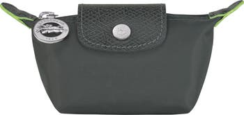 Clean lines and signature logo hardware define this compact coin purse made of recycled polyamide canvas with textured leather trim.