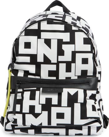 A durable canvas exterior trimmed in smooth leather and patterned in a bold monogram print distinguishes a spacious backpack that makes a perfect companion for commutes to office or weekend getaways.