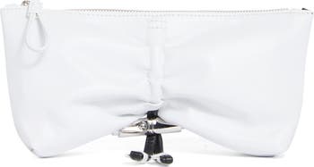 Perfectly sized to carry your essentials, this compact leather clutch is finished with a polished drawstring accent at the center.