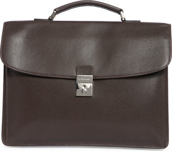 Keep your work essentials organized and secure in this triple-compartment briefcase expertly shaped from pebbled leather.