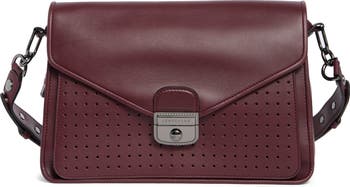 Perforated calfskin leather and signature hardware elevate the aesthetic of a streamlined crossbody bag fitted with a compact interior.