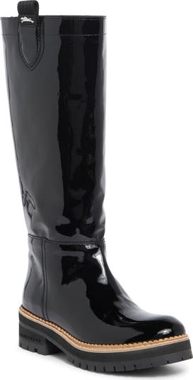 These glossy patent-finish boots are ready to blaze a countryside trail with easy pull-tabs and a chunky lug sole for dependable traction.