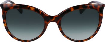 A sleek cat-eye silhouette adds retro appeal to scene-stealing sunglasses with glossy temple accents that shine in the sun.
