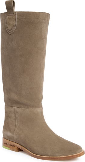 A side pull-tab allows you to easily slip into this tall boot made from soft buttery suede and grounded by a stacked block heel.