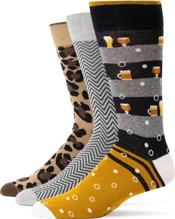 An assortment of patterns and solid hues decorate these Italian-made dress socks made of stretchy cotton in a comfortable crew length.