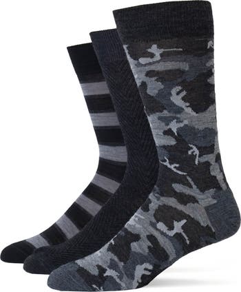 An assortment of patterns and solid hues decorate these Italian-made dress socks made of stretchy merino wool in a comfortable crew length.