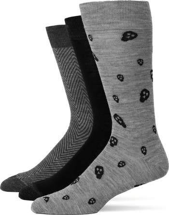 An assortment of patterns and solid hues decorate these Italian-made dress socks made of stretchy merino wool in a comfortable crew length.