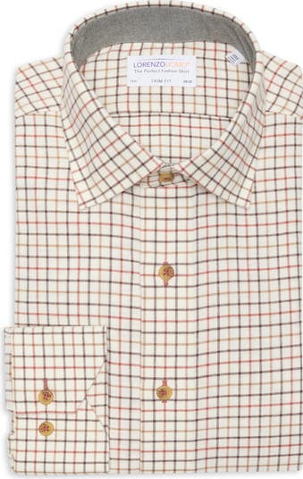 Trim Fit Small Windowpane Cotton Dress Shirt