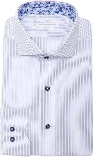 A clean, trim fit and textured vertical stripes make this cotton dress shirt a must-have for any wardrobe.