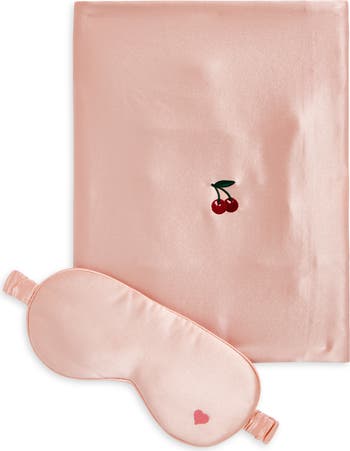 Embroidered Satin Pillowcase & Sleep Mask Set