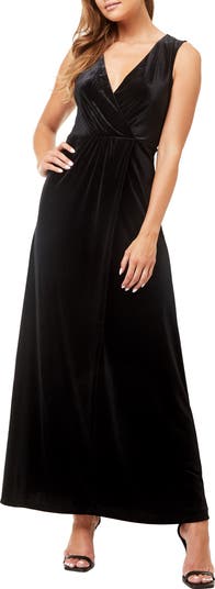 Luxurious velvet elevates the uncomplicated design of this classic yet elegant sleeveless maxi dress that features a figure-flattering surplice bodice and empire-waist.
