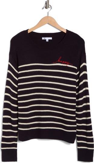 Spread a little endearment in this striped sweater featuring love embroidery.