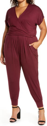 Cut from soft, supple jersey, this ready-for-anything jumpsuit features a deep surplice neckline and pleat-front pants that end in tapered, banded cuffs.