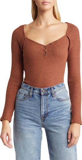 Henley-inspired buttons add visual interest to a lightweight-yet-cozy ribbed top cut for a layer-ready slim fit.