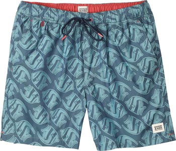 From beach days to poolside hangs, these fish-covered swim trunks offer sun protection, a water-repellent finish and pockets that keep things handy.