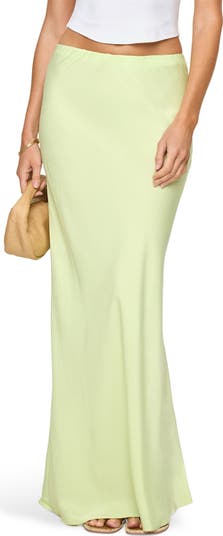 Stop for sunset cocktails in this flowy maxi skirt cut from flowy lightweight fabric in a pale green hue.